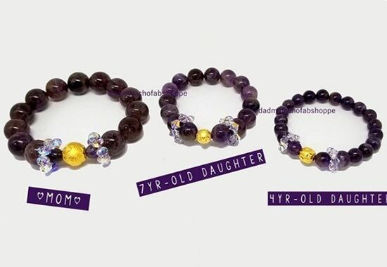 風水ママキッズツインネイチャー天然アメジストブレスレットセット